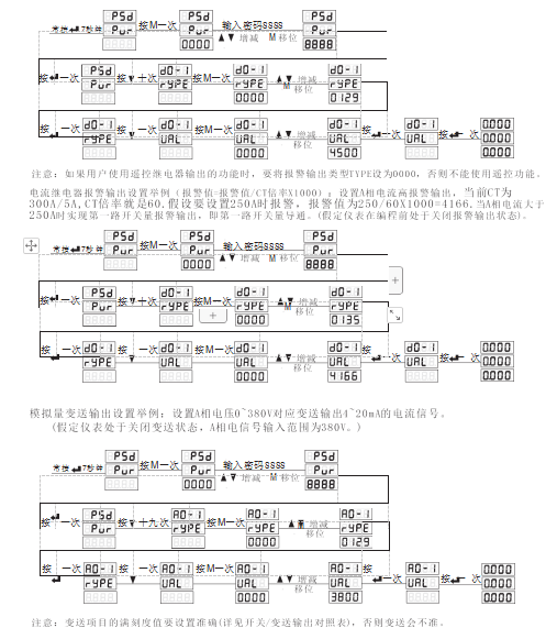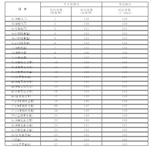 注意:變送報(bào)警值為二次電網(wǎng)整型數(shù)據(jù),UAL值對(duì)照表中的刻度值單位,也可參照附錄1.MODBUS-RTI 繼電器輸出繼電器容量: 3A 250VAC/5A 30DC