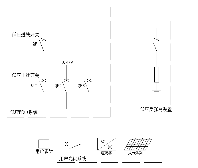 以上幾種情況來看,推薦將低壓反孤島裝置于每一路有并網(wǎng)光伏發(fā)電系統(tǒng)的出線都進(jìn)行安裝,且該出線側(cè)開關(guān)應(yīng)滿足遙控遙信功能。