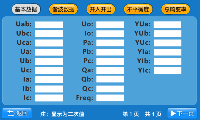 在主畫面選擇“基本測(cè)量”并通過(guò)手指輕觸圖標(biāo)進(jìn)入實(shí)時(shí)數(shù)據(jù)顯示畫面第一項(xiàng)“基本數(shù)據(jù)”如下: