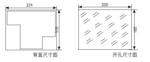 本產(chǎn)品為面板式安裝,其標準配件有:溫濕度傳感器、溫濕度傳感器線、安裝支架、?綠接線端子等。安裝時只需在開關(guān)柜面板上開好孔,開關(guān)柜開孔尺寸為220mm×165mm, 將裝置嵌入開孔,只需用三個安裝支架卡入裝置固定孔后旋緊,緊箍螺釘即可。