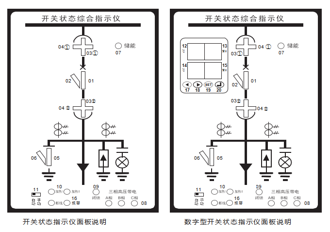 07 | 儲能指示 | 08 | 帶電指示(A B C)三相 |