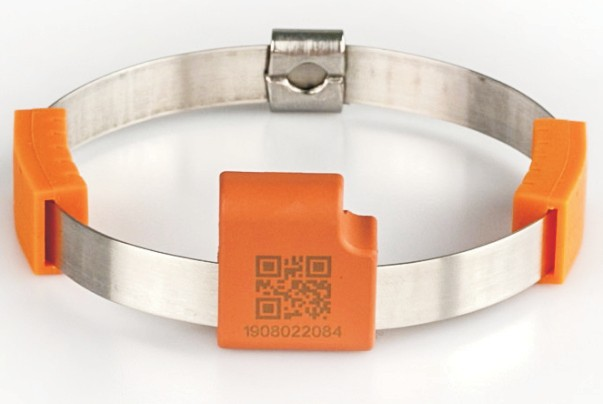 選擇一根表帶,對應(yīng)其上面的標示的觸點地址編號,對裝置主機菜單內(nèi)的觸點地址作相應(yīng)設(shè)置,然后對表帶傳感器背面接觸