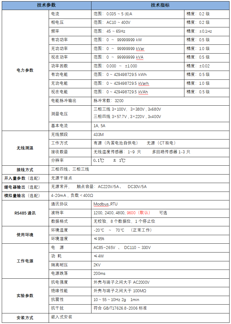 測量參數(shù):?相電壓、線電壓、頻率、電流、有功功率、無功功率、視在功率、