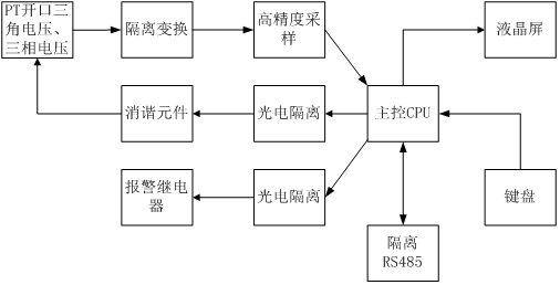 諧振被成功消除則裝置的液晶屏上顯示諧振類型和發(fā)生時間,并且諧振報警繼電器吸合5到10秒鐘,以提示曾有鐵磁諧振發(fā)生。