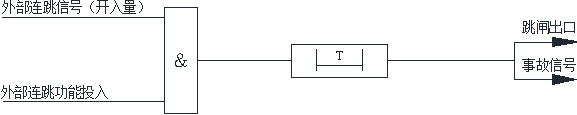 裝置配有2個(gè)外部開(kāi)入聯(lián)鎖跳閘功能,可單獨(dú)投退。邏輯如下圖所示: