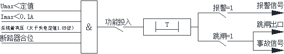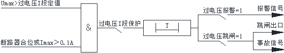 事故指示燈。過(guò)壓一段與過(guò)壓二段的保護(hù)邏輯相同。過(guò)壓一段保護(hù)邏輯如下圖所示: