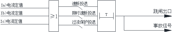 裝置支持三段式過(guò)流保護(hù),每段過(guò)流保護(hù)的功能投退、定值和延時(shí)都可獨(dú)立整定,任何一段過(guò)流保護(hù)動(dòng)作都會(huì)點(diǎn)亮故障指示燈。邏輯如下圖所示: