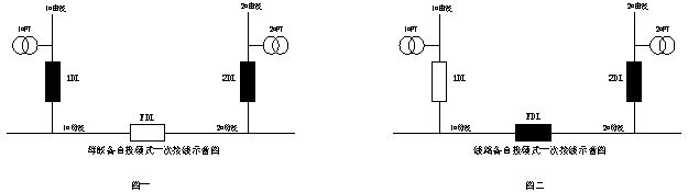 此動作方式適合于#1為主電源,帶2段母線運行。#2為備用電源,只帶#2的母線。設(shè)置此種動作方式時,進線1為主電源,進線2是備用電源,當(dāng)1#發(fā)生電源故障,跳1DL,跳FDL,投入2#后,1#電源恢復(fù),則裝置會跳開2DL,然后合FDL,合1DL,回到主電源。