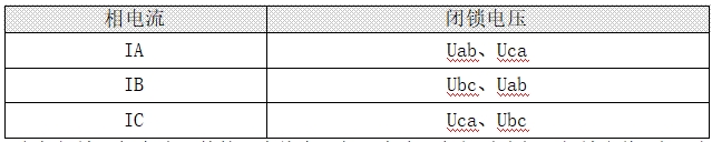 采用線電壓按相閉鎖方式,各相電流元件的閉鎖情況為: