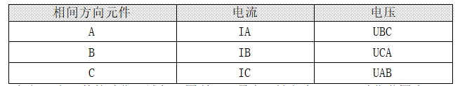 本裝置的相間方向元件采用90゜接線方式,按相連接如下表: