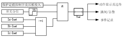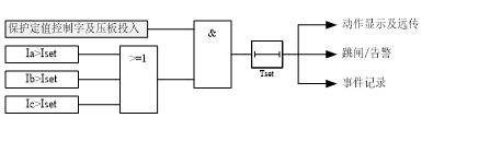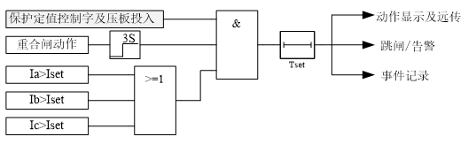???裝置設(shè)置了獨(dú)立的過流加速段電流定值及相應(yīng)的延時(shí)時(shí)間定值,與傳統(tǒng)的保護(hù)相比,使保護(hù)配置更加靈活,過流加速保護(hù)原理如圖所示。