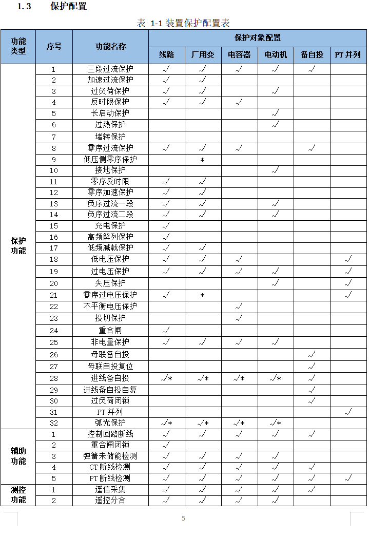 1.1?非電量保護(hù)(線路、廠用變、電容器、電動(dòng)機(jī)保護(hù)配置)