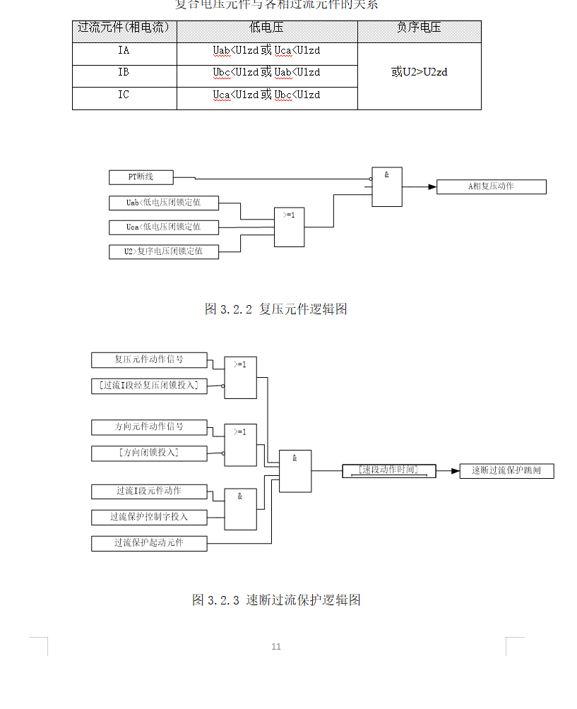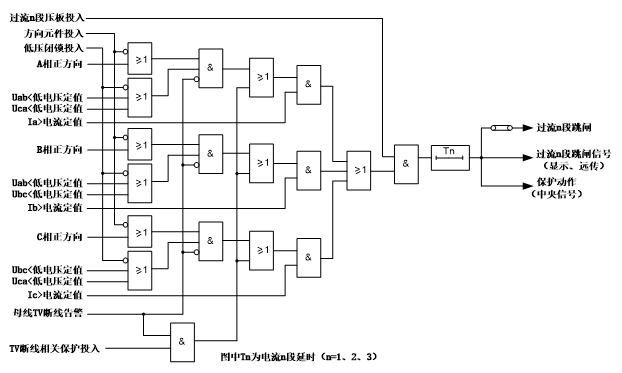 裝置設(shè)有速斷、限時(shí)、常規(guī)過流的三段式帶低壓閉鎖的電流方向保護(hù),各段電流及時(shí)間定值可獨(dú)立整定,通過分別設(shè)置整定控制字控制這三段保護(hù)的電壓元件、方向元件的投退。